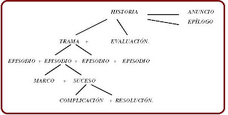 El centro de toda narración, según Van Dijk (1983), está conformado por las acciones que involucran a personas. De estas acciones dependen los demás elementos textuales y a estos constructos de carácter estructural, se añade el aspecto pragmático: lo narrado debe aparecer como interesante al auditorio y para que lo sea, las acciones deben ser narradas apartándose de lo que normalmente ocurre en los escenarios y tiempos que le sirven de marco. De este hecho, surge la primera categoría formal de la narración: la complicación, que supone una subversión de un estado de hechos considerados como naturales. Ante esta complicación, las personas involucradas en la acción reaccionan. Esta reacción constituye el elemento estructural segundo, que recibe el nombre de resolución y que puede ser positiva o negativa, exitosa o frustrante. Van Dijk denomina suceso a la suma de la complicación y la resolución. Cada suceso se enmarca en un contexto temporal y espacial llamado marco, que junto al suceso o los diferentes sucesos formarán el episodio. El conjunto de episodios de la narración forman la trama y ésta, unida a la evaluación u opinión del narrador frente a su relato, estructura la historia como término técnico. Adicionalmente, pueden aparecer otros dos elementos de valor pragmático más que estructural, ellos son el anuncio y el epílogo. Este último suele ser la moraleja de algunos cuentos y de las fábulas. Los dos elementos últimos son ajenos a la historia. De la misma manera, puede alterarse el orden secuencial y existir una flexibilidad relativa de la estructura narrativa, pero “los elementos obligatorios deben aparecer en la narración aun cuando se requiera un reordenamiento cognitivo que permita recuperar la superestrutura típica” (Freites, 1995).